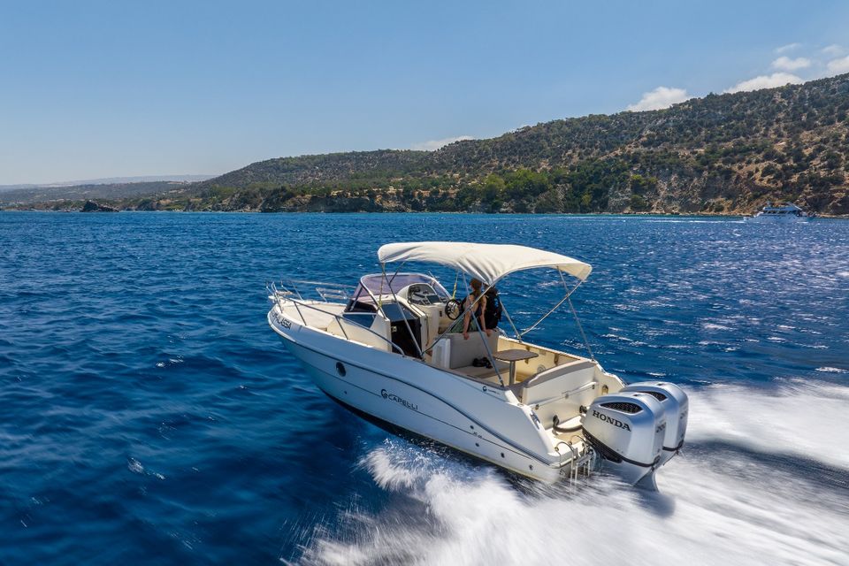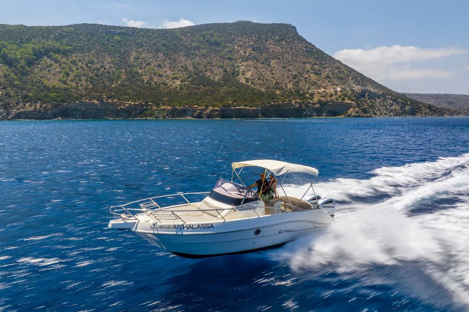 Embark on an unforgettable Mediterranean adventure along Cyprus's most breathtaking coastline. Departing from the charming fishing harbour of Latsi, your private boat charter offers the ultimate freedom to explore the pristine Akamas Peninsula at your own pace. Your experienced local captain knows every hidden gem along this protected coastline - from secluded swimming spots to dramatic sea caves. Whether you choose our sleek Parker Bow Rider 'Selene' or the sophisticated Capelli 'Thalassa', you'll enjoy premium comfort with spacious sunbathing areas, a private cabin, and onboard facilities. Cruise past the famous Blue Lagoon with its turquoise waters, anchor in peaceful bays accessible only by sea, and feel the Mediterranean sun on your skin as you relax on deck. This is your day, your way - whether you want to swim, snorkel, sunbathe, or simply cruise along the spectacular coast, your captain will tailor the journey to your desires. The Akamas Peninsula remains one of Cyprus's last wild frontiers - a protected nature reserve where sea turtles nest and dolphins occasionally play in the bow waves. With your private charter, you'll experience this natural paradise without the crowds, creating memories that capture the true spirit of the Mediterranean.